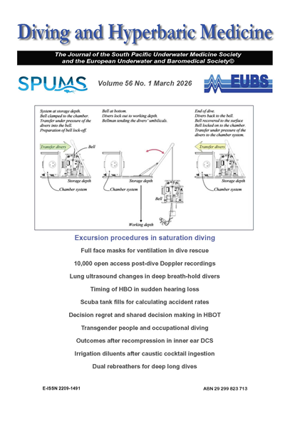 SPUMS is incorporated in Victoria, Australia, A0020660B and Diving and Hyperbaric Medicine is registered with the National Library of Australia, E-ISSN 2209-1491, ABN 29 299 823 713.