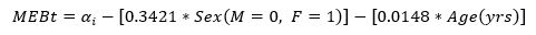 The resulting equation for calculating the logit of the categorical outcome variable MEBt is given: